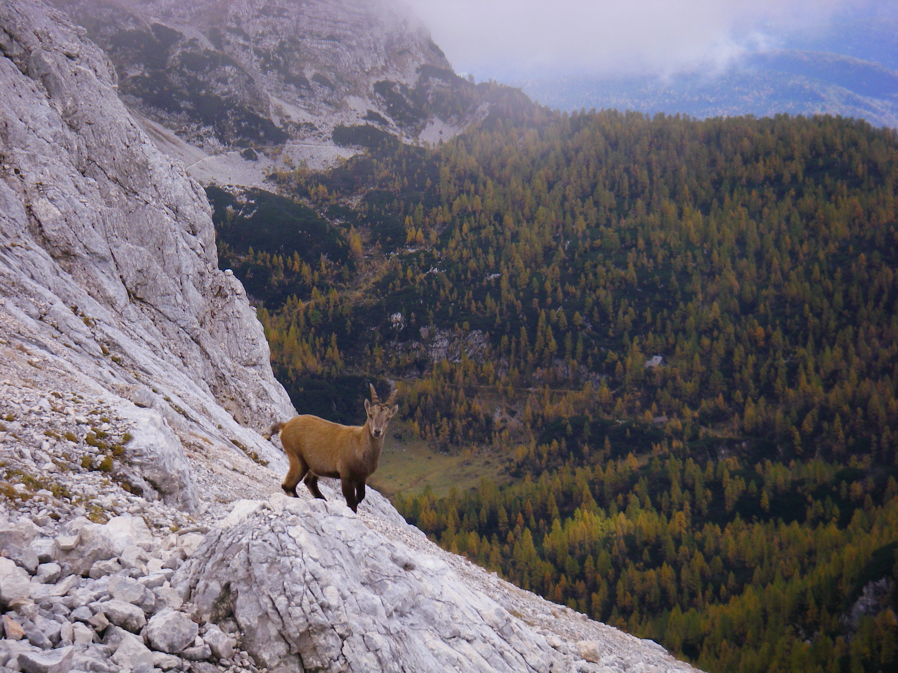 Due to the school year starting later in the UK than many other countries, I was able to take a long weekend trip to Slovenia. This was possible largely thanks to the availability of cheap flights on discount airlines all across Europe. Once in Slovenia, my trip began with a bus trip passing by Lake Bled, and Lake Bohinj. It was a Thursday afternoon and I began with a hike into the mountains to the nearest open hut. Friday brought an almost absurdly long day where I covered a large distance in variable weather. I was hoping to climb Triglav – the highest point in Slovenia, but in the end I turned back at 2500m due to slippery snow. I think I may have been able to make the summit, but I would not have seen anything due to the fog, and the risk of a slip and fall on the way down while hiking alone was unacceptable. I saw two people at the start of my day, but then no one for the rest of my journey – but I did see close to 20 chamois over the day! Saturday morning brought a hike out of the mountains and a bus journey to the capital city Ljubljana. After a pleasant afternoon and evening in the capital, it was off to bed to catch a flight back to London on Sunday morning. A short but successful trip!