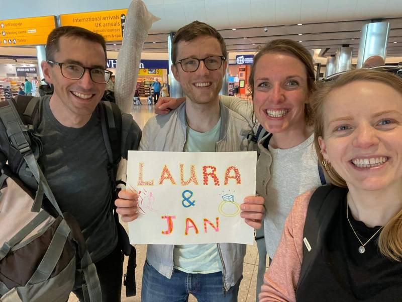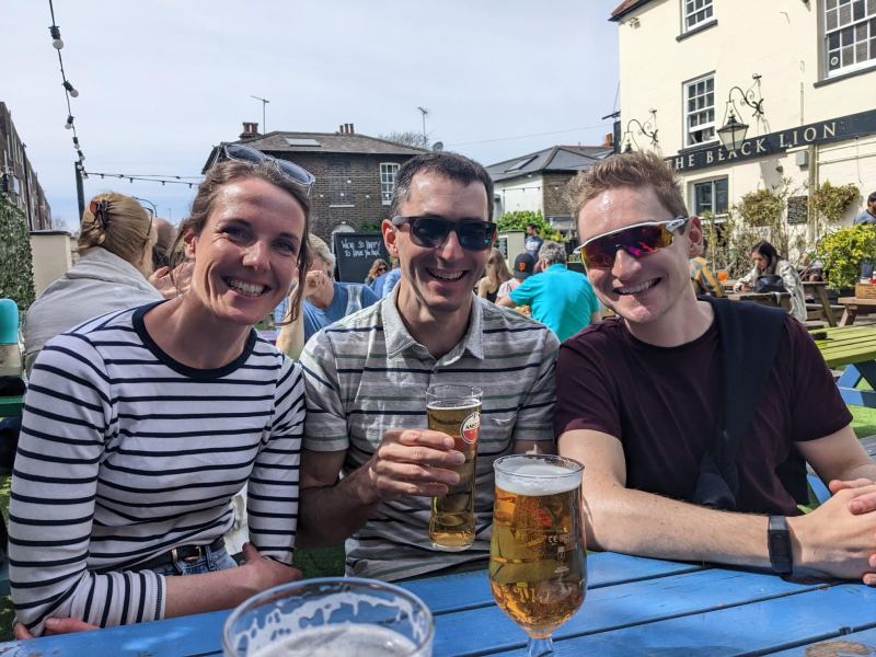 After over two and a half years away, we were able to make a trip back to the UK this April. We were greeted by friends right at the airport, and enjoyed a stunning ten days of beautiful weather, and fun times with friends and family.