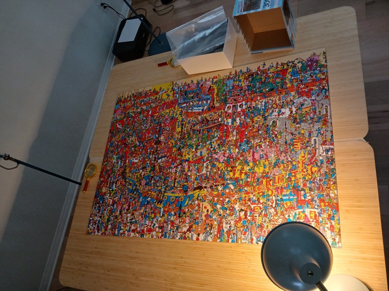 Between ski days, we worked on completing the 3000 piece puzzle we started over Christmas. A major time commitment, and not something that should be undertaken without lots of table space, magnifying glasses, and many cups of tea. In the end, we discovered that we were missing 1 piece – can you find the empty space in the picture below?