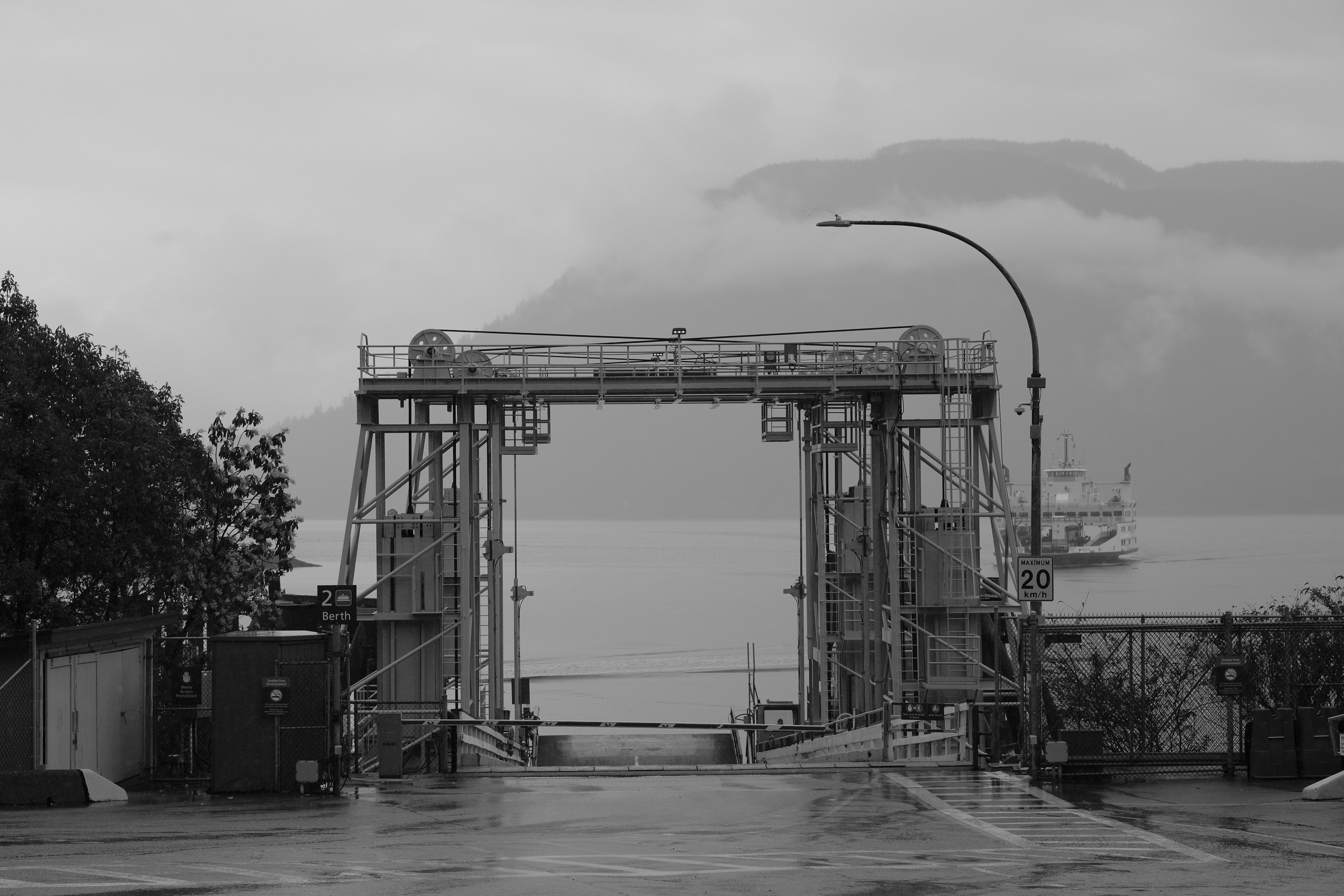 Saltery Bay Ferry terminal on a rainy day.